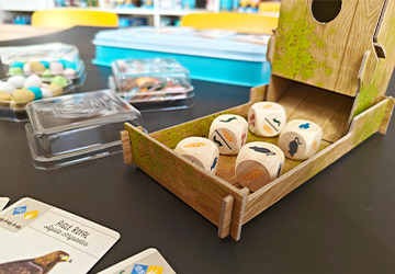 Hundreds of magnificent illustrations, a dice tower, wooden bird's eggs, a plastic insert... each of the items in this universe is brimming with a plethora of high-quality material, accompanied by anecdotes about the animal species included in the game.