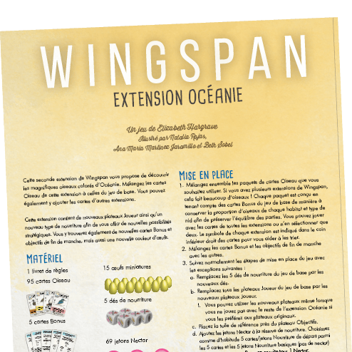 An expansion focusing on bird species of Australia and New Zealand, with new cards, trays, eggs, food... (FR ONLY)