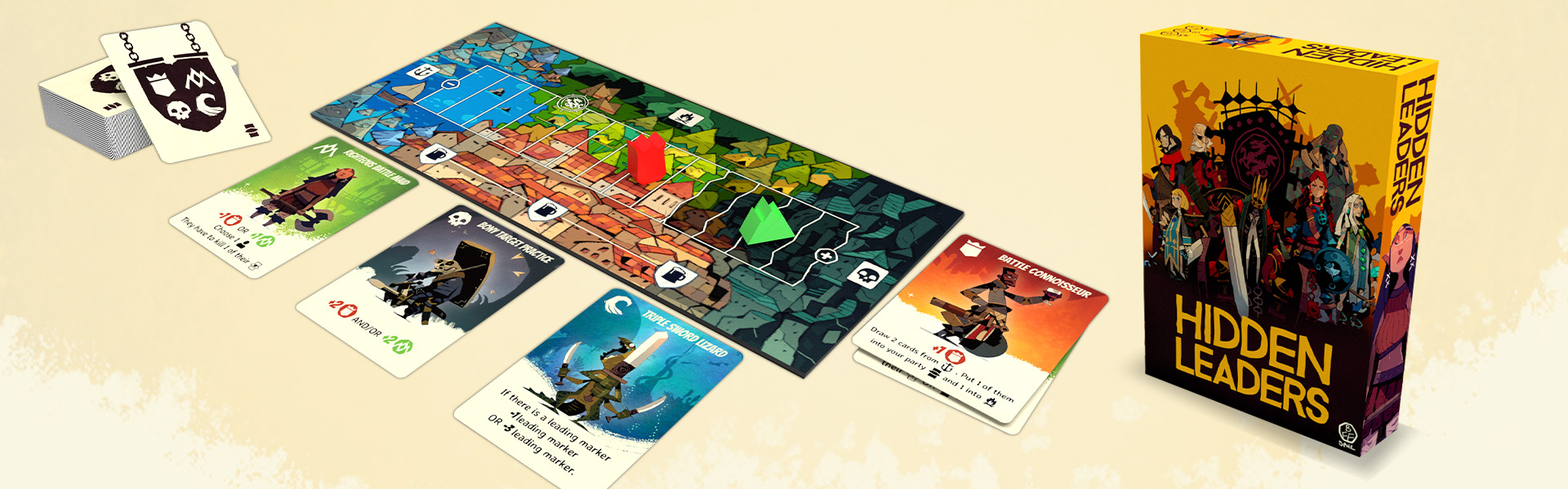 A deluxe version of Hidden Leaders, with several exclusive additions (screen-printed meeples, player aid cards, more hero cards...)